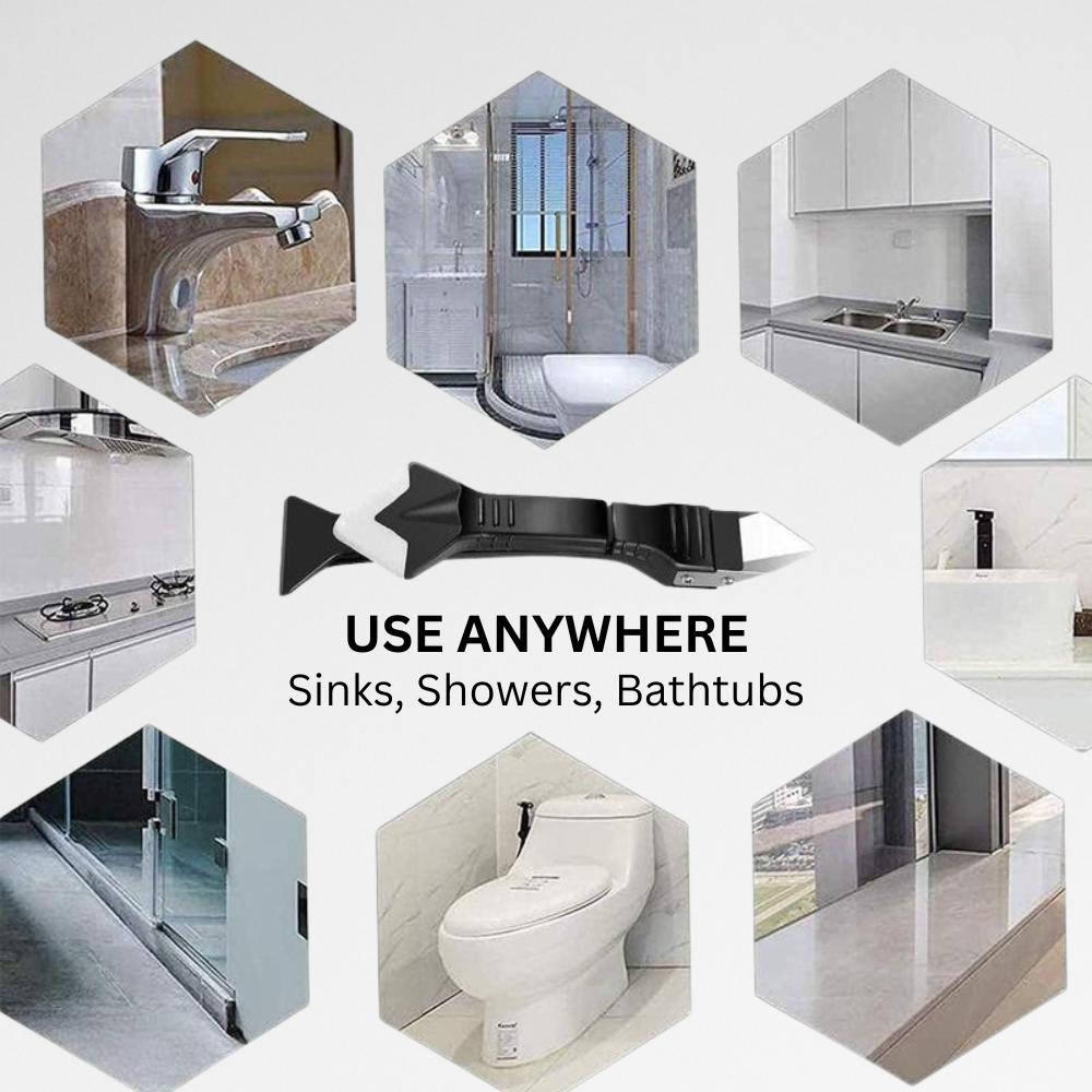 No. The stainless steel scraper removes old caulk without scratching, and the silicone tips are gentle but precise.